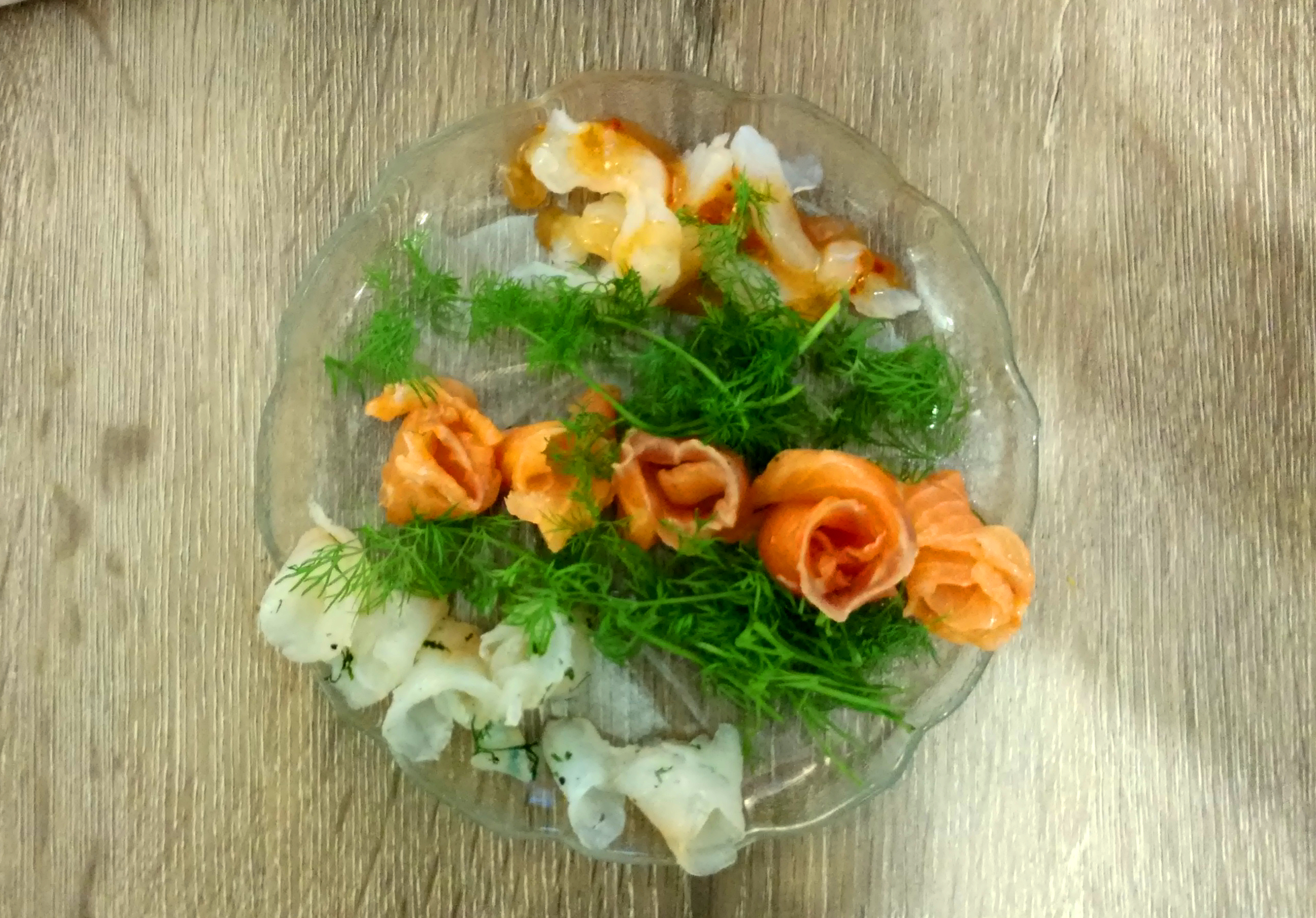 Graavikalat otettiin pois suolasta n. 20 h graavautumisen jälkeen. Suoritin pitkään odottamani koemaiston siivutuksen yhteydessä, joka valitettavasti päättyi pieneen yskäisyyn reilun ylisuolauksen vuoksi. Reseptissähän luki ”lisää suolaa niin, että kalan pinta peittyy”. Näin olin todella tehnyt ja koska graavautumisaika oli suositellun 16 – 24 h väliin, löytyy ylisuolautumisen syyllinen suolan määrästä.