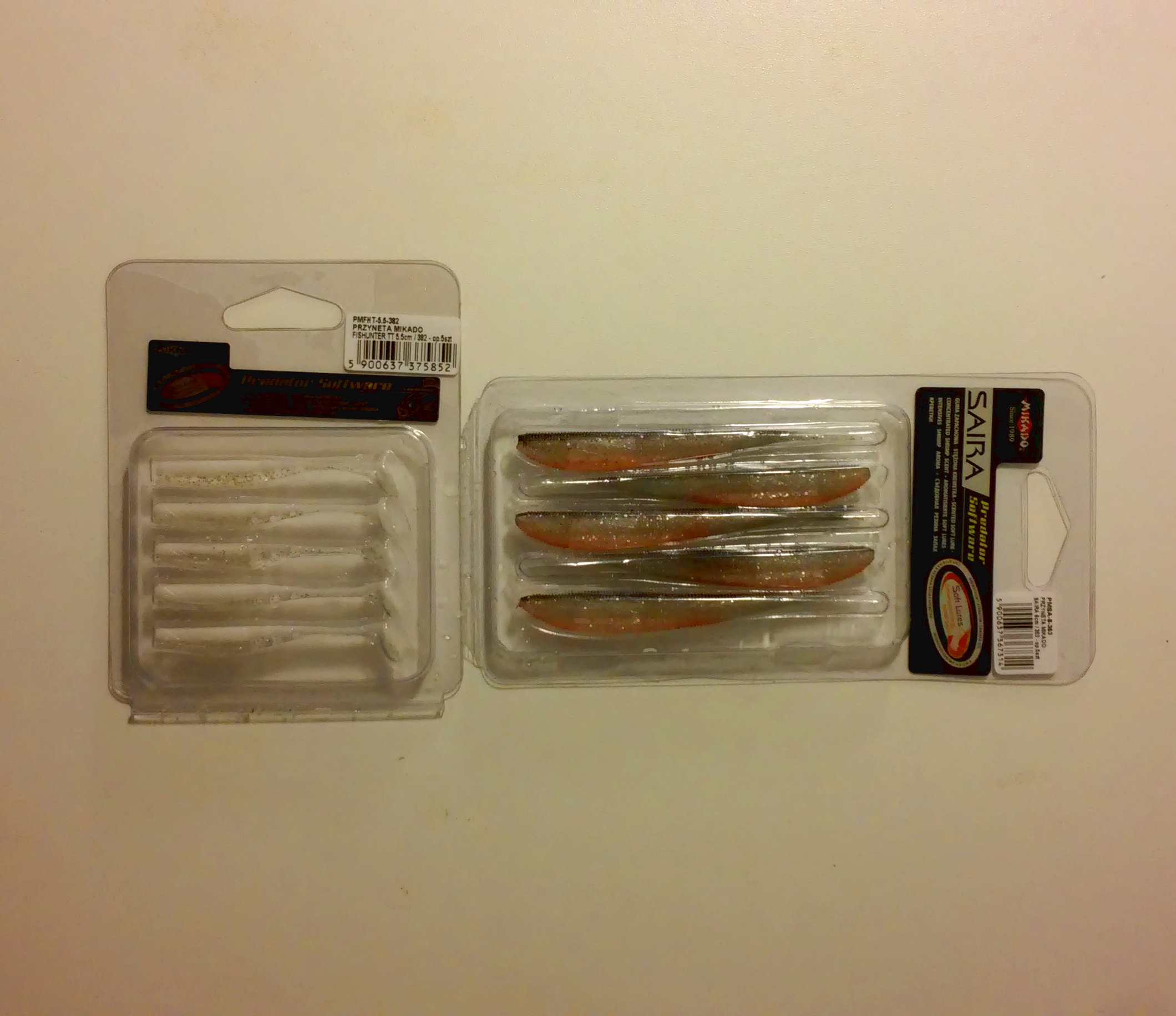 …Motonettiin, josta löytyi kuin löytyikin 5,5 cm Fishunter TT värissä 382, eli juuri siinä oikeassa valkoisessa. Oranssi TT odotti jo kotona kesähommia, mutta valjastaisin yhden pilkkikäyttöönkin. Mikadon jigeistä varsinkin 5 ja 8 cm sairat, mutta myös tietyt Fishunter TT mallit ovat myyty loppuun lähes koko maasta. Teppo oli prismasta löytänyt hilemuikkuvärissä (353) 8 cm sairaa, joten päätinpä samalla pelastaa itsellenikin paketin, jos kohta loppuisivat kokonaan. Nyt sairoija löytyy itseltäni 8 cm koossa oranssi, musta sekä muikku. Vielä oikean valkoisen kuin saan, niin olen 8 cm kokoelmaani tyytyväinen.