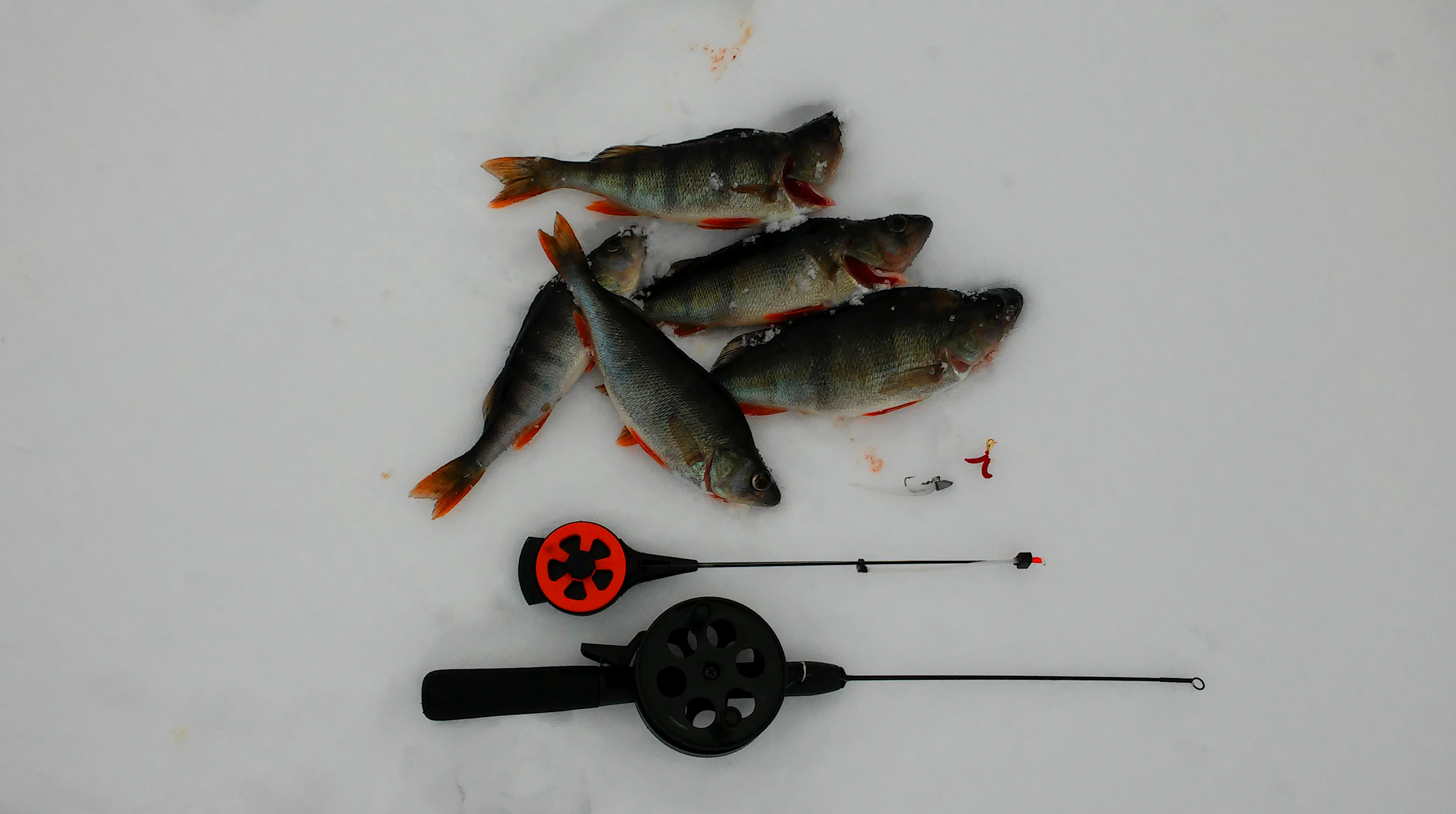 Siirryin seuraavalle rivistön rei’istä ja samalla päivä pelastui täydeltä katastrofilta, sillä valkoiseen sairaan iski perä jälkeen pari filekalaa. Tein näiden reikien lähettyville lisää reikiä, joista nousi lopulta 5 otettavaa ahventa. Morrikin antoi lopulta niistä kaksi ok kokoista. Pienemmätkin kalat innostuivat lopulta siitä lähes samaan malliin, kuin aitotoukkaisesta versiostakin.