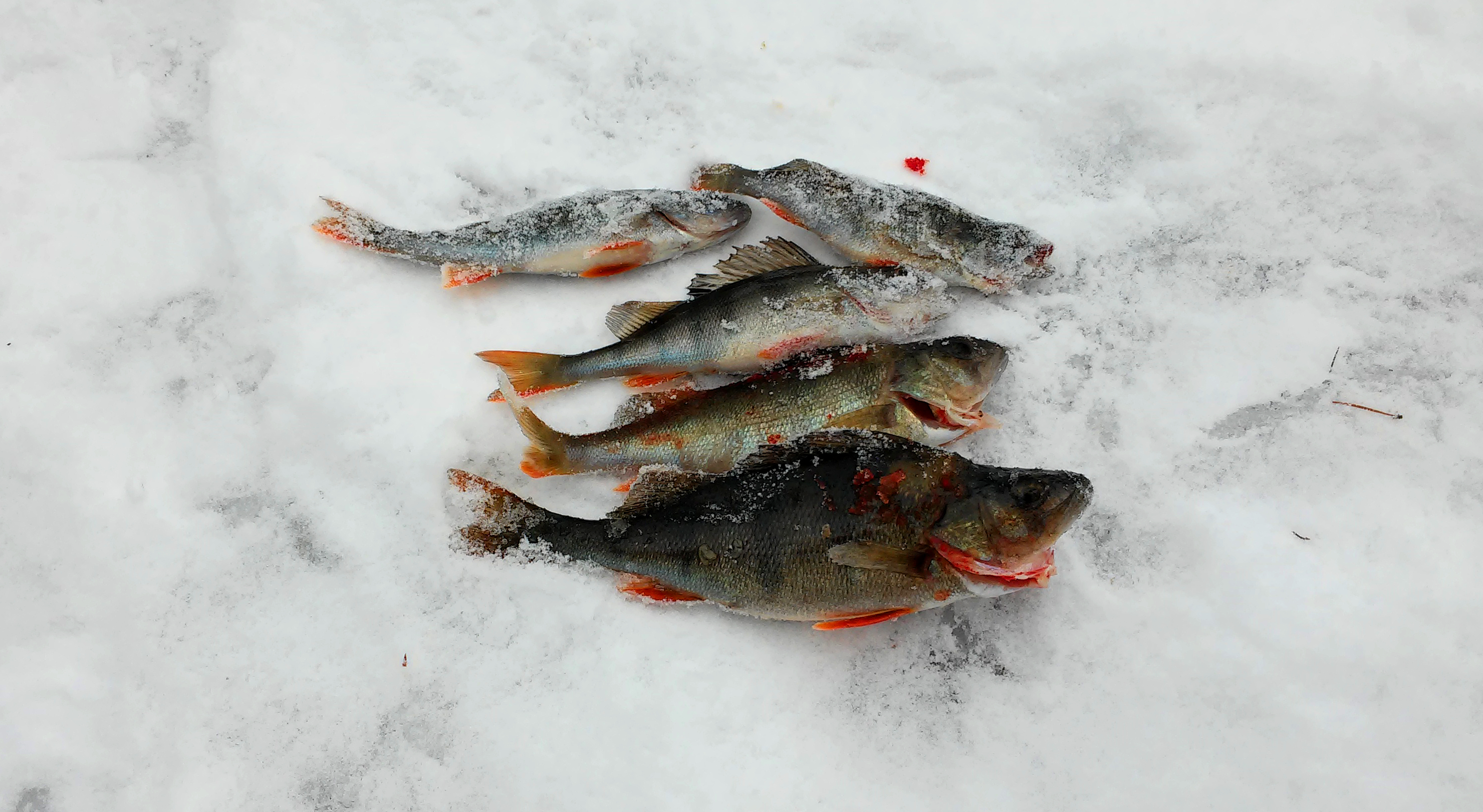 Filekala oli siis selkeästi kadoksissa. Edes sitä 75 – 150 g ahventa, mitä viimeksi löytyi kohtalaisesti, ei tullut nyt juuri yhtään. Selkein ja jopa dramaattinen olosuhdemuutos, lumen tulo uudestaan jäälle, selittänee tätä asiaa paljon, sillä muutama senttikin lunta estää todella tehokkaasti valon pääsyä jään alle. Muissa olosuhdemuuttujissa ei mitään niin ihmeellistä näyttänyt olevan, mikä sekin sysää heikon syönnin syytä entisestään muuttuneiden lumiolosuhteiden ja sitä kautta valo-olosuhteiden piikkiin.