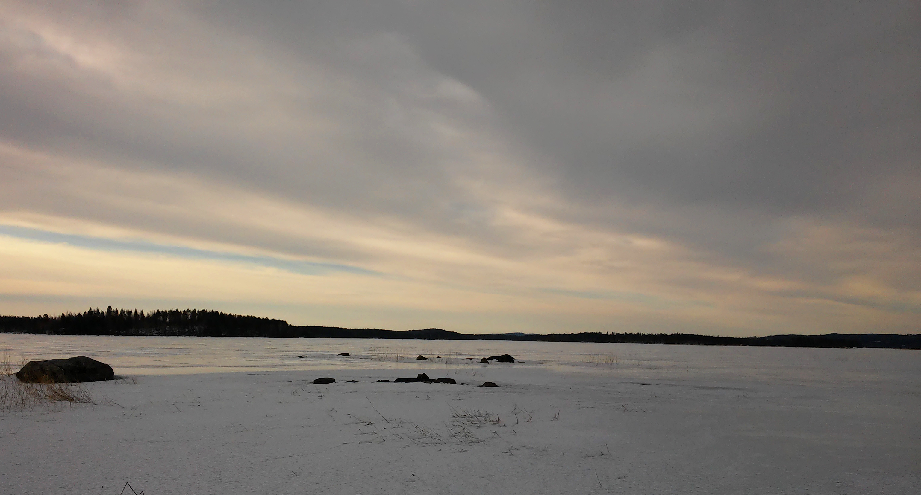 Pitkästä aikaa sai tehdä myös selkeän havainnon olosuhteiden ja syönnin väliltä. Syönti lakkasi kuin seinään pilvien peittäessä auringon. Ero oli valtava, sillä kaveri oli nostanut lähes kilpapilkkitahtiin 80 ahventa samasta reiästä ja kelin muututtua ei noussut enää kuin pari. Näihin aikoihin morrittelin itse ympäriinsä, saaden pikkukaloja sieltä täältä ja samalla tavalla tuntui hiljenevät koko ympäröiväkin alue. Kahta tuntia aiemmin oli edelliset päivät nousussa ollut ilmanpainekin kääntynyt laskuun, joten sillä saattaa olla osansa syönnin hiljenemiseen.