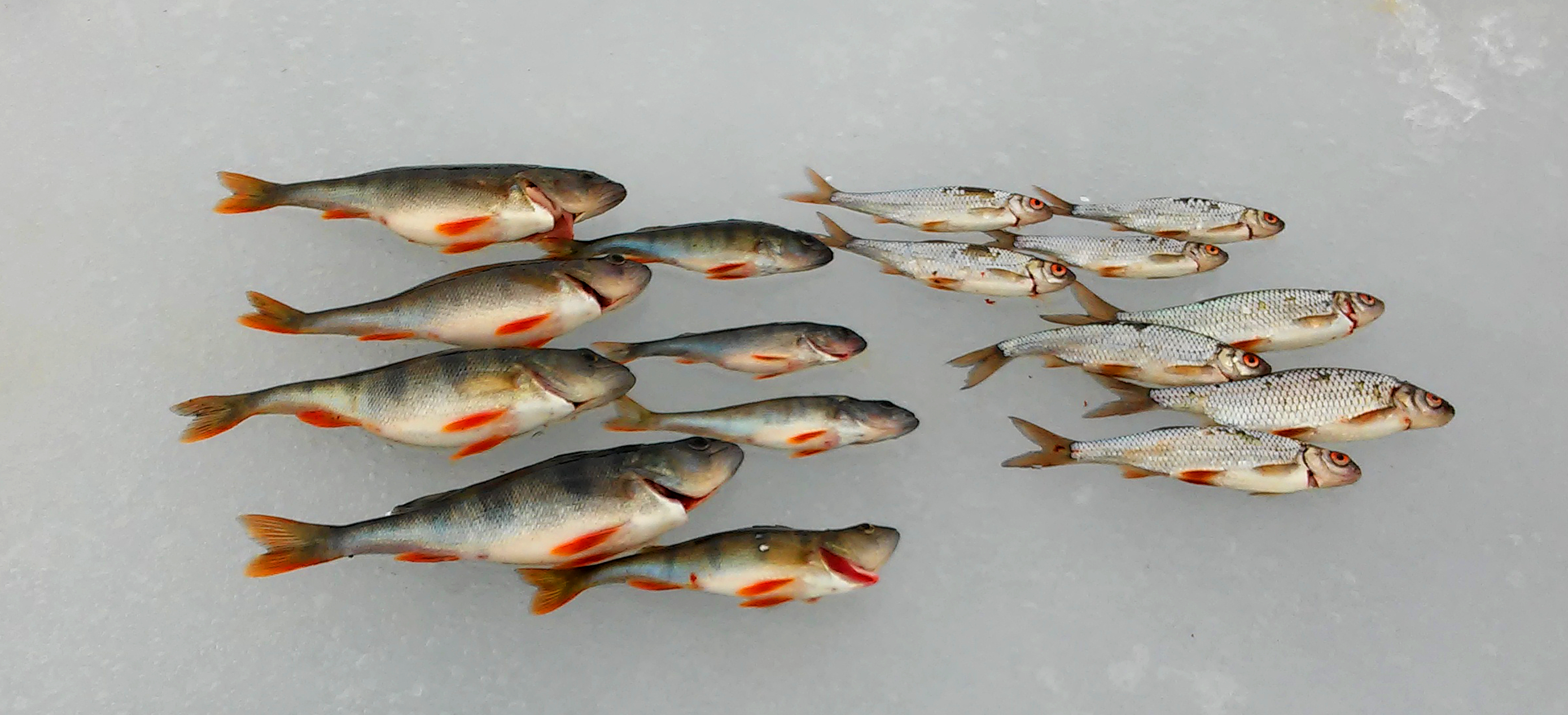 Lähellä, n. 20 m päässä, mutta silti niin kovin kaukana oli pitkästä aikaa hyvä reissu olettaen, että olisin itse nuo samat kalat tuolta reiältä saanut. Nyt koossa oli yhteensä 10 filekalaa ja muutamia karkuutuksia. Lisäksi pilkin alun ja oletetusti parhaimman aamusyönnin muualla, ennen siirtymistä parhaaksi jääneelle alueelle. Määrällä ei vielä pulkkaa täytetä, mutta sain sentään merkkejä siitä, että tältä alueelta voisi onnistua ja aion ehdottomasti tulla tänne vielä uudelleen.