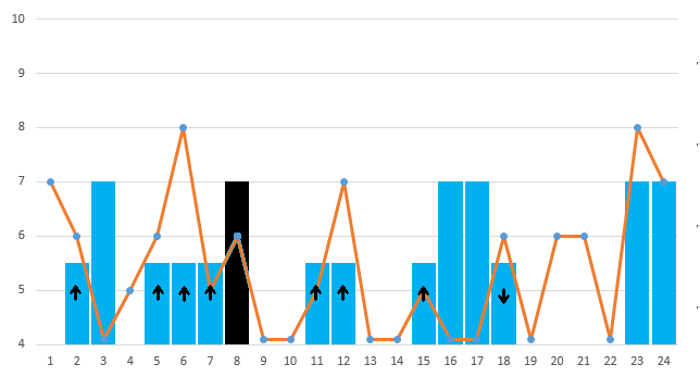 Kuvaaja sytyttää pienen mielenkiinnon kipinän. Uudenkuun reissujen 4., 10. sekä 22. jälkeen kasvussa kun olivat kuun lisäksi myös arvosanat. Tarkastellaanpa asiaa keskiarvojen kautta: