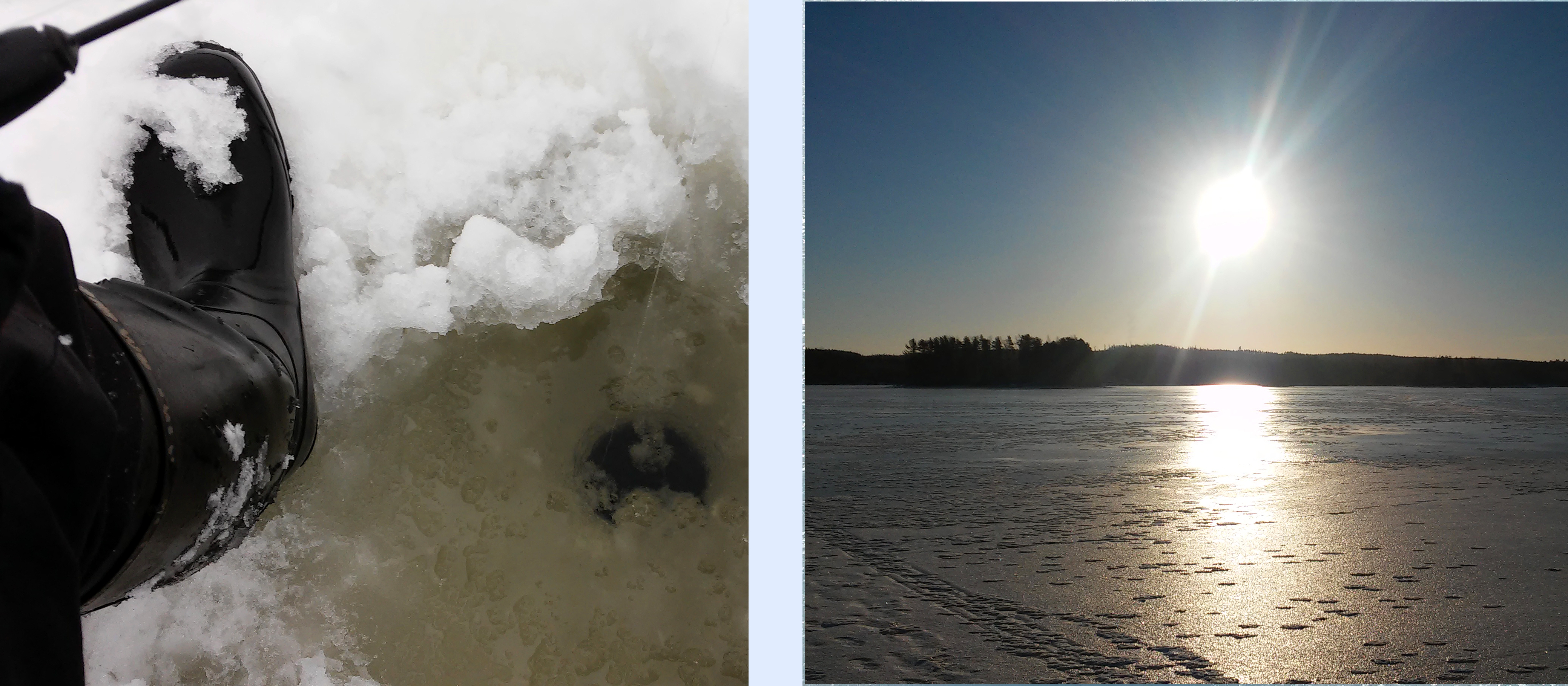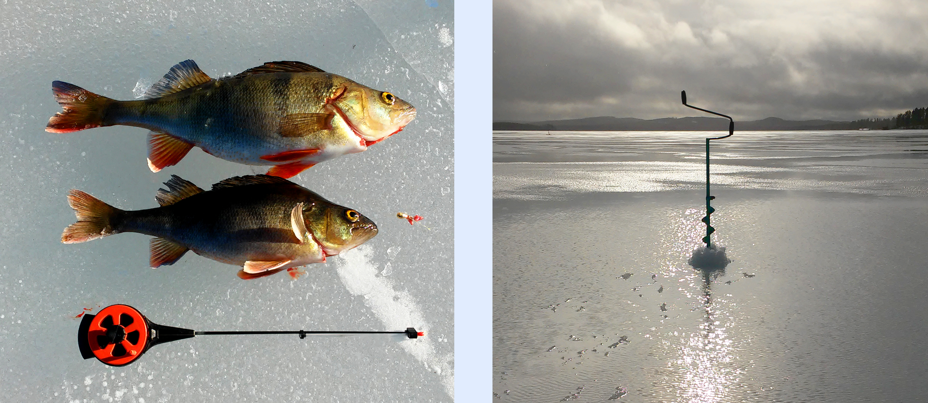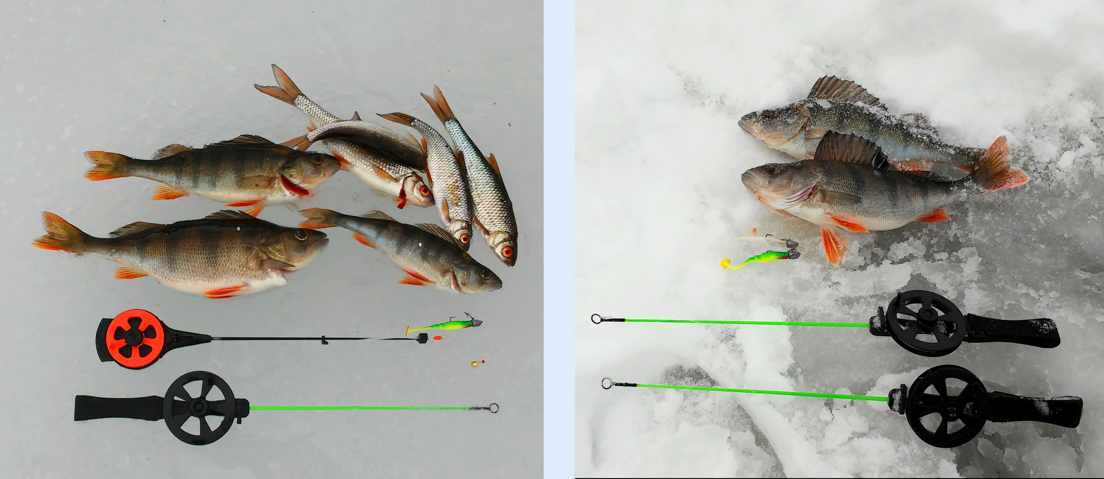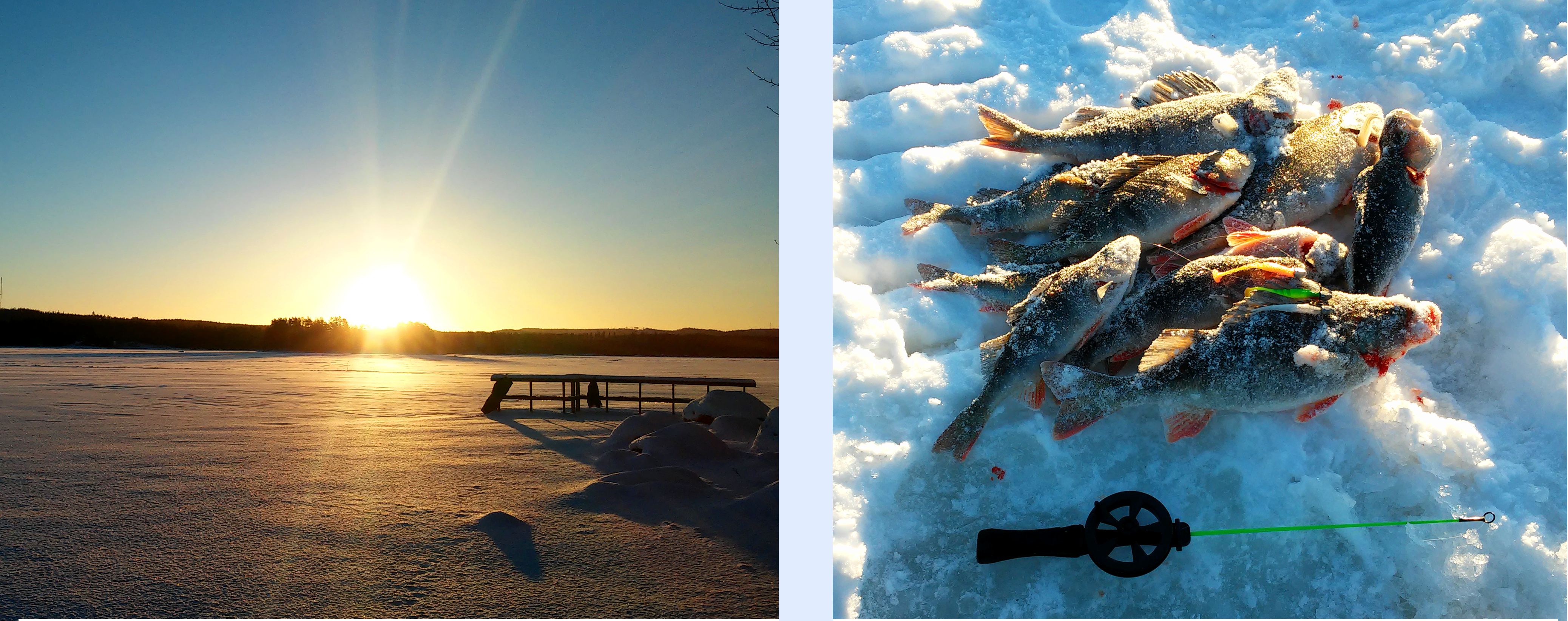 Jouduin pitämään parin viikon pilkkitauon tammikuun puolivälistä kuun loppuun. Lisäksi runsaat lumisateet tekivät jääolosuhteet vaarallisiksi, jonka itsekin sain havainnoida kauden 9. reissulla mm. jään läpi hujahtaneen jalan merkeissä. Mieleen hiipi kauhukuvia koko pilkkikauden kohtalosta, sillä kovatkaan pakkasjaksot eivät purreet jäähän silloisen lumimäärän läpi.