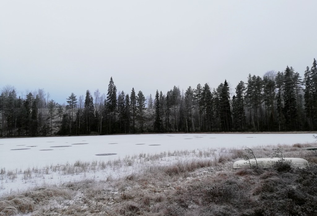 Teimme kierroksen lammen ympäri, tuloksena yksi hauki. Jouluhaukeni on täten turvattu, mutta muuten syönti oli olematonta, joten palasimme lopuksi alun rei’ille.
