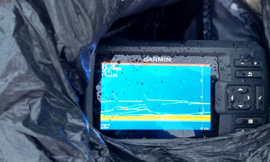 Anturi avantoon, napista käyntiin, näkymän valinta ja se oli siinä. Näin vaivattomasti alkoi kaikuluotaimen käyttö ja herkkyyden säädön jälkeen sainkin ihailla jo selkeää kuvaa jigistä ja ensimmäisistä sitä tutkimaan nousseista kaloista. Sen koommin ei tarvinnut tehdä yhtäkään säätötoimenpidettä koko reissun aikana.