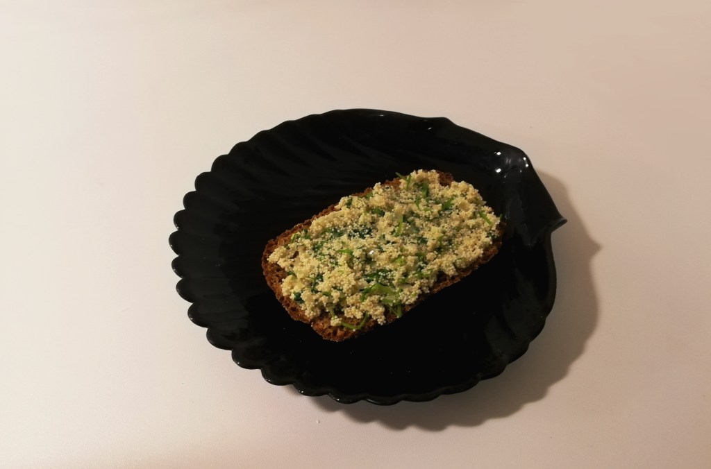 Yhdistä lopuksi sipuli ja mäti, lisää ripaus valkopippuria ja viimeistele tillisilpulla.