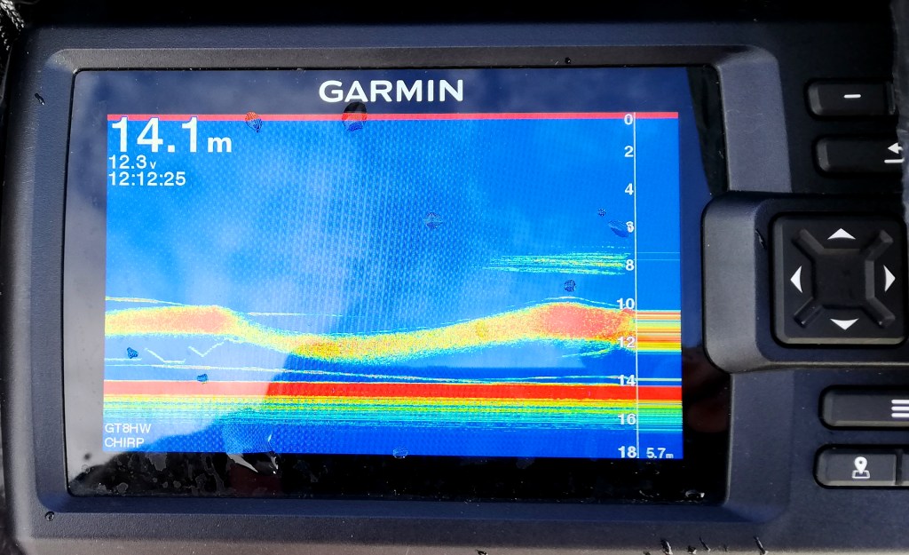 Kyseessä oli syvä ja kapea lahdenpohja. Yli 10 m syvyydestä löytyi yllättävänkin iso pikkukalaparvi. Ja jo totutusti alle 10 m syvyydessä pikkukalat hävisivät eikä merkkejä mistään isommastakaan näkynyt.