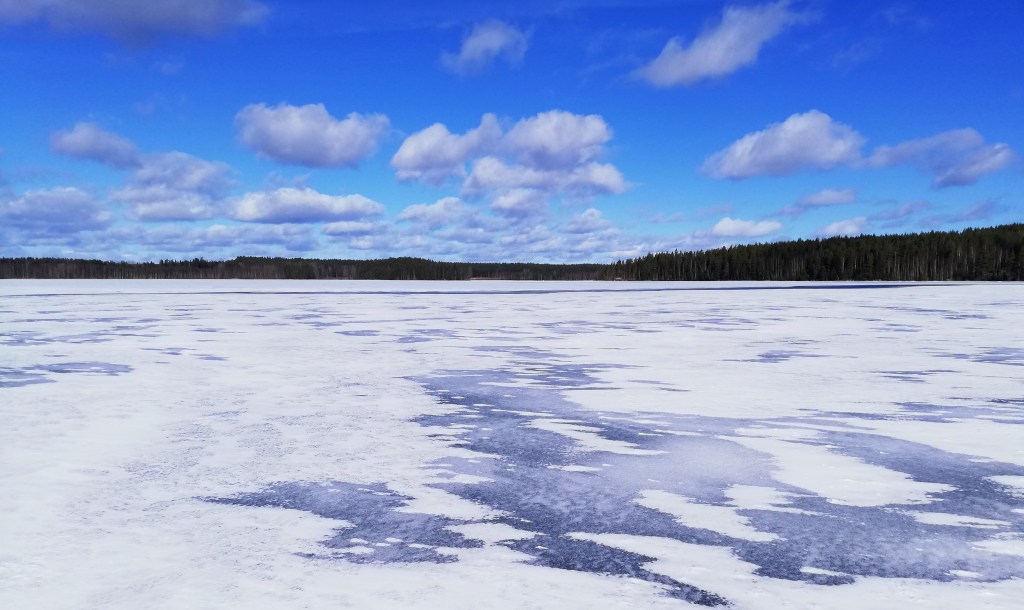 Keli oli ollut viileä sekä pilvinen ja kun edeltävänä yönäkin pakasti, oli aamu aloitettava ajamalla Leppävedelle. Jospa sitä vielä kerran pääsisi. Ja pääsihän sitä. Jää oli pysynyt kovana ja kuivana, joten 13 – 16 cm kerros vielä kantoi.