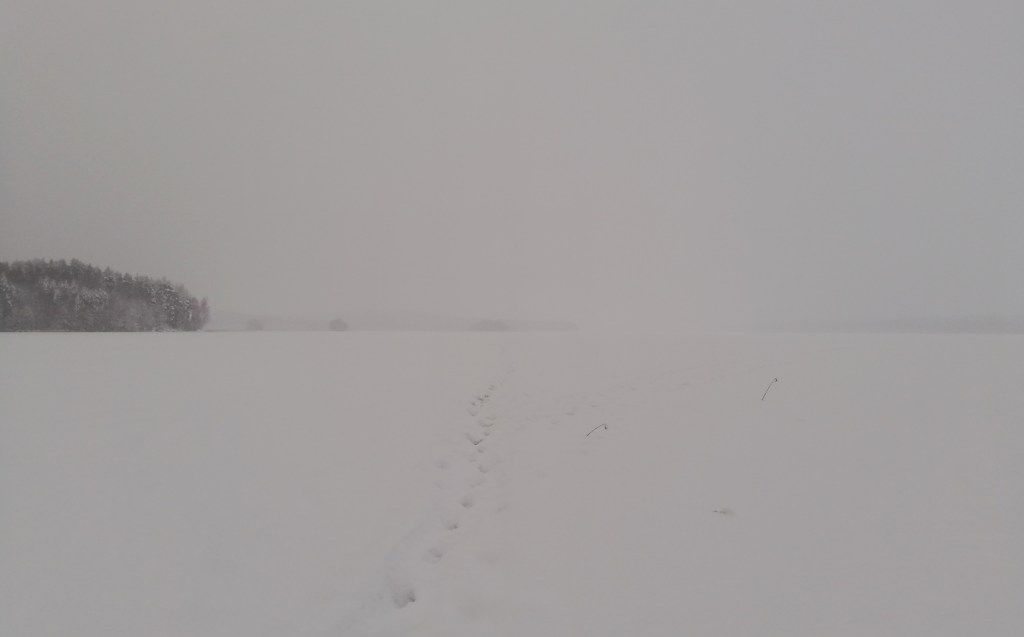 Mutta miksi näin? Mahdollisia syitä on lukuisia. Ensinnäkin olosuhde verrattuna viimevuotiseen oli täysin eri, kun lumettoman jään kalastusta vertaa saappaan paksuiseen hankeen. Uskon sen olleen suurin mahdollinen syy heikkoon saaliiseen. Toisaalta Kuusvesi on yhä niin tuntematon, että koin fiksuksi yrittää nyt tämän talven ensireissulla silti viimevuotisilta paikoilta.