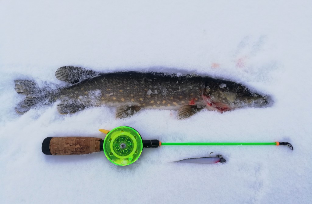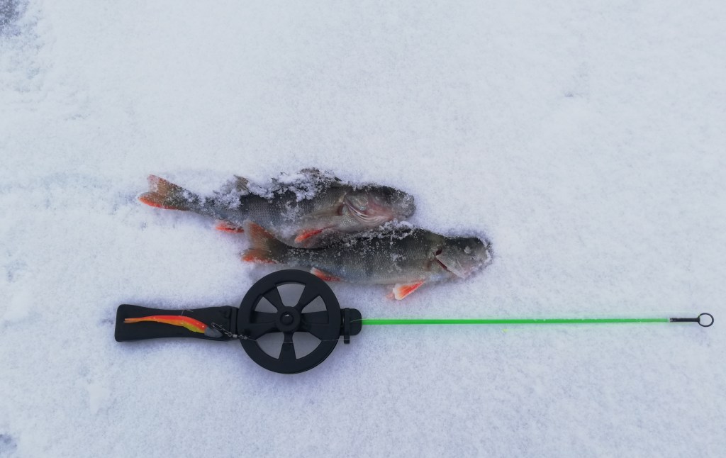 Ensimmäinen hauki tuli kuitenkin, mikä ottikin yllättävän paljon aikaa verrattuna viime talven haukitärppimääriin. Tulikin mieleen, että kenties enemmän käsittääkseni näköaistin avulla saalistava hauki kärsisi lumen tuomasta pimeydestä muita lajeja enemmän. Se selittäisi sitä, miksi lumeton viime talvi oli niin haukirikas ja luminen toissa talvi, sekä ainakin tämän talven alku, haukien osalta hyvin hiljaista.