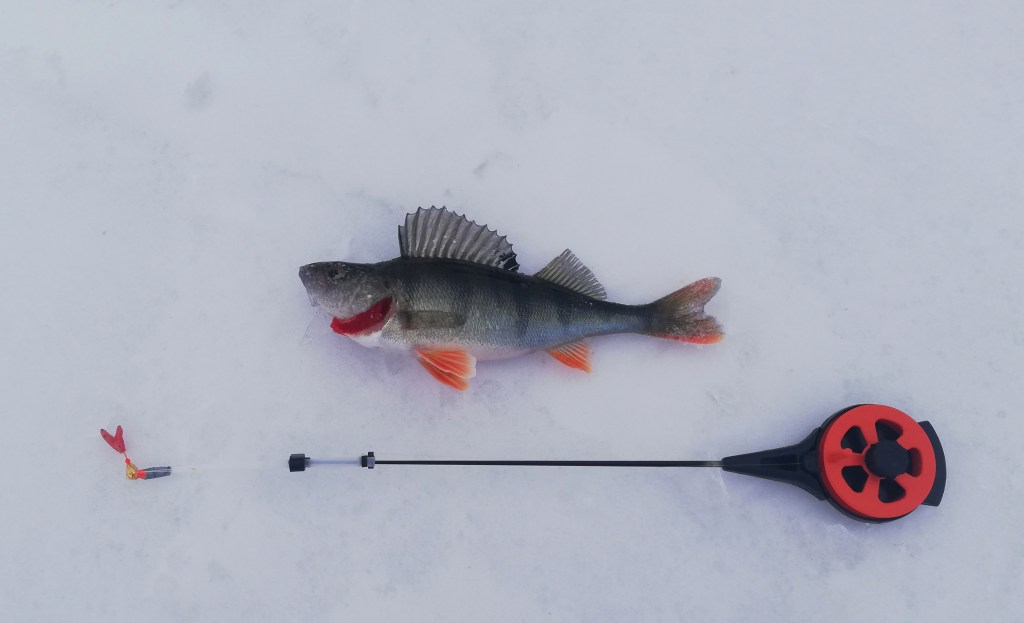Kokeilin nopeasti vielä aamun ahvenet antaneen reiän. Ja allehan ilmestyi kalaa! Saira ei maistunut, mutta ehdin vaihtaa morriin ilman parven uimista muualle ja sain sillä samanlaisen putken kuin aamusta: Neljä hyvää ahventa, joskin hieman aamuisia pienempiä.