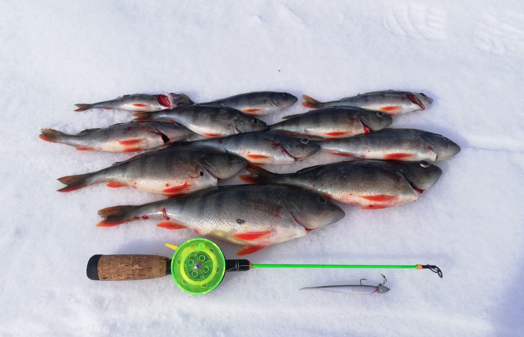 Parvi pysyi, ihme kyllä, ensimmäisen ahvenen nostamisen aikana alla eikä jäljelle jääneiden ruokahalu ollut yhtään pöllömpää. Alle viidessä minuutissa jäällä oli 4 hyvää ahventa jo ennen aamu kahdeksaa.
