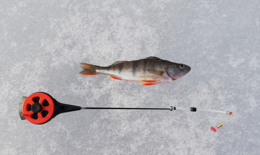 Liekö sama parvi, vai monta pientä, mutta tuo 7 – 9 m syvyys kurouman suulla oli lähes täynnä pientä ahventa. Matalammasta ei sen sijaan löytynyt enää mitään. Siinä muuten pilkin reissulla 2-5 kelpo tuloksin. Kokeilin vielä kurouman keskilinjasta sivummalle kaislikkoon, jopa alle 1.5 m veteen, mutta vain pientä oli sielläkin tarjolla.