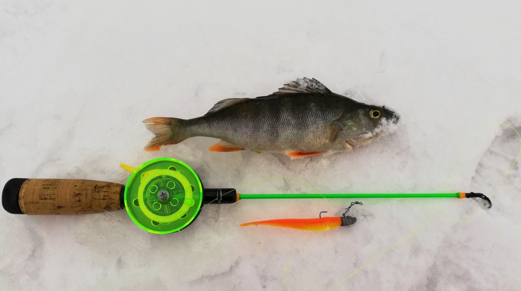Alkuun oli hiljaista. Koitin houkutella alueella mahdollisesti yhä lymyäviä ahvenia isoilla jigeillä, mutta tuloksetta. Halusin kuitenkin pysyä samalla reiällä nähdäkseni, onko mahdollinen aamusyöntipiikki tulossa.