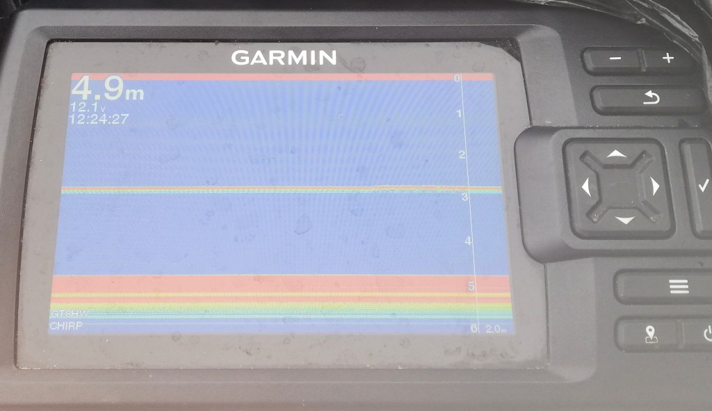 Yleensä homma on mennyt niin, että alueen keskeltä löytyy pikkukalaparvi ja sen reunoilta ne ahvenet, jotka ottavat. Pikkukalaparvea en löytänyt millään, mikä enteili kenties huonoa, mutta rei’itin silti vielä sen reunustan, josta kaloja olen saanut. Lopputulos oli tyhjentävä: Ei ainuttakaan kalahavaintoa. Alue oli niin täysin kuollut, että tunnin reitittämisen jälkeen oli päivän selvä ratkaisu vaihtaa paikkaa.